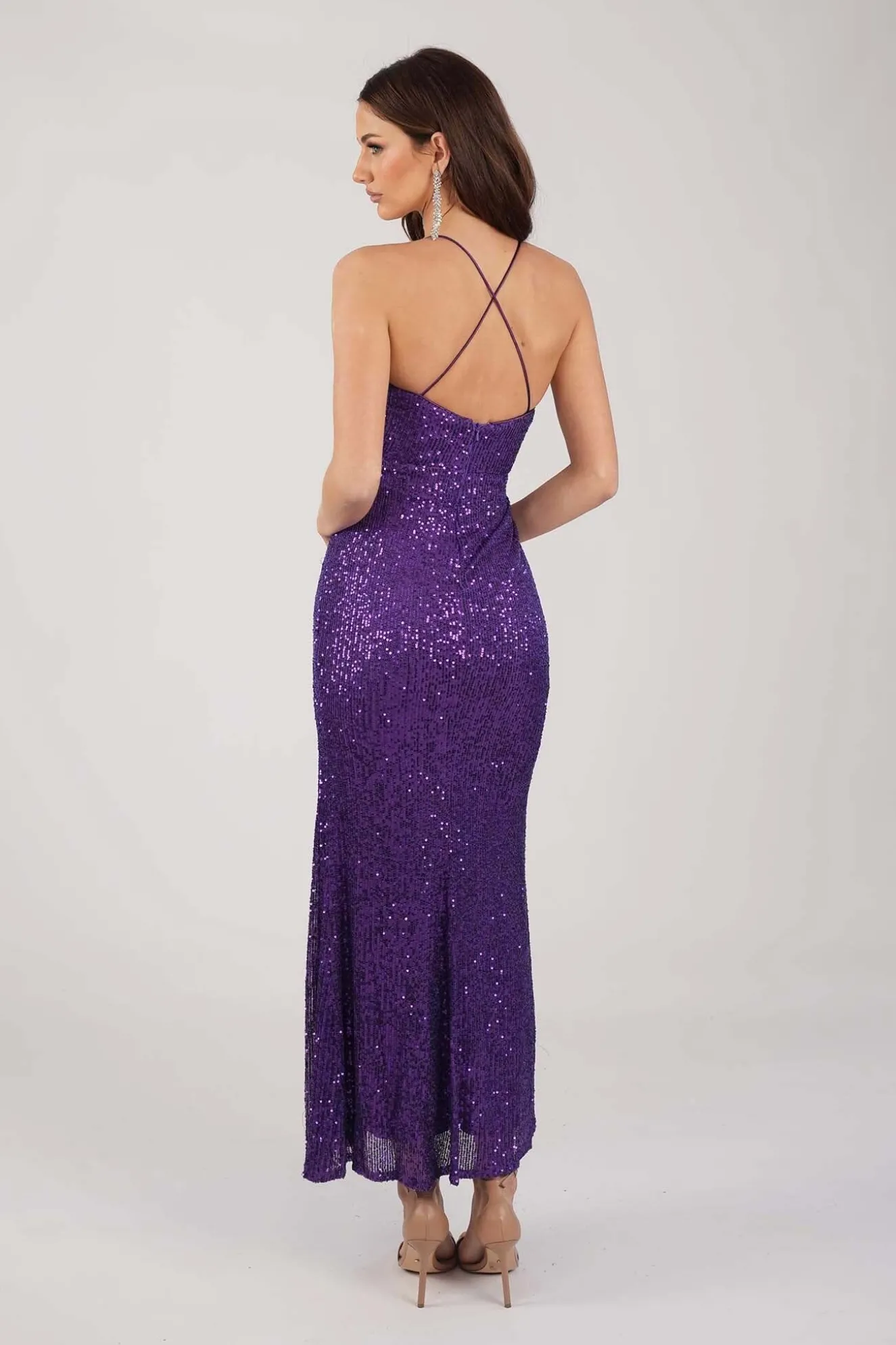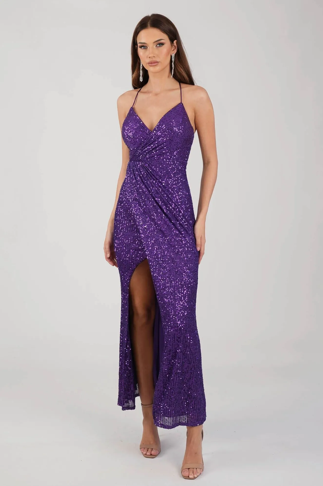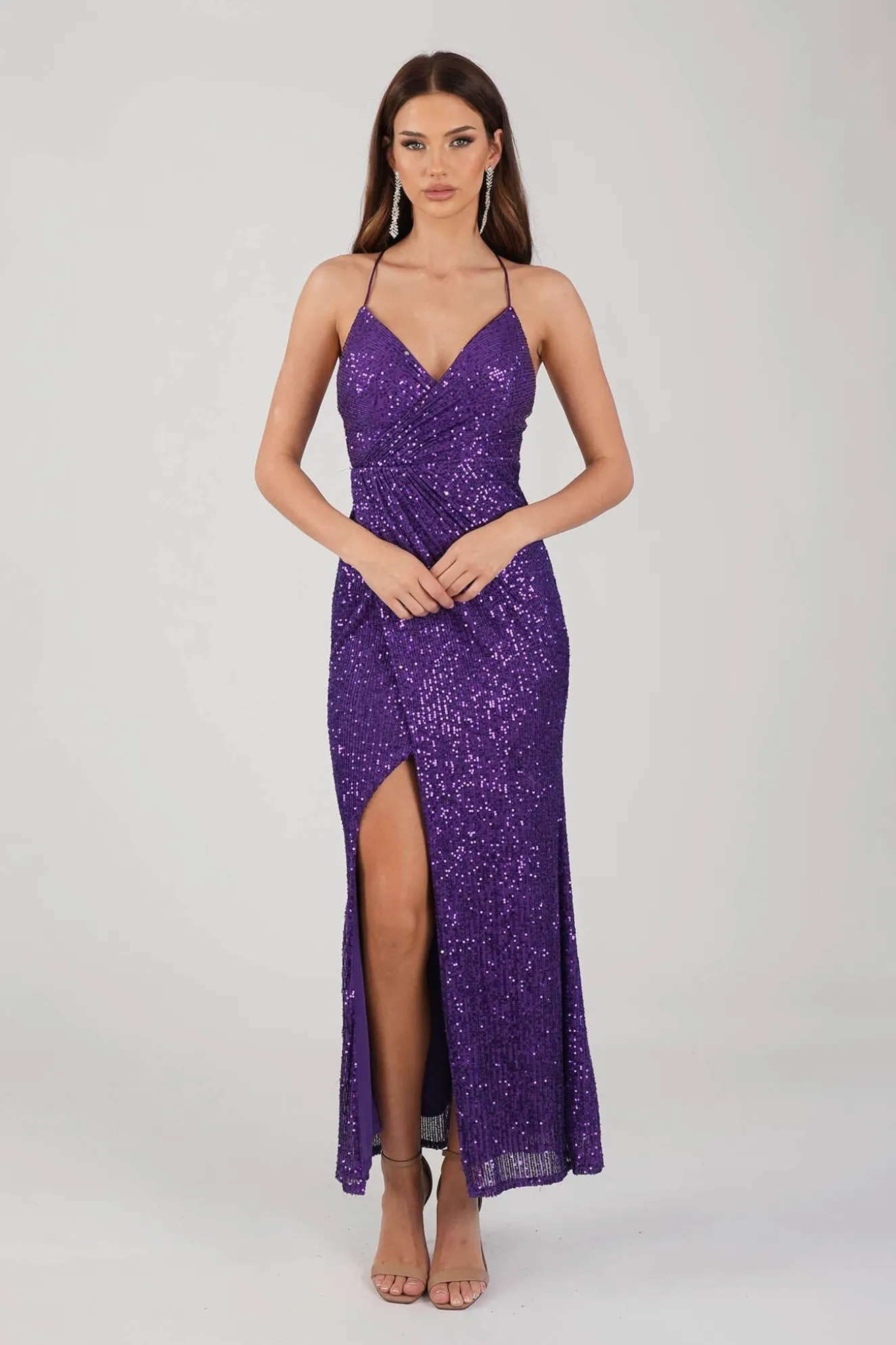 The gorgeous Clarice sequin maxi dress features a classic V neckline, figure flattering fit, above the knee slit and crisscross open back design. This sequin maxi dress will stun at any formal event such as prom, gala and black tie events and weddings. Style this maxi evening dress with simple or sparky accessories, heels and clutch to complete the look.