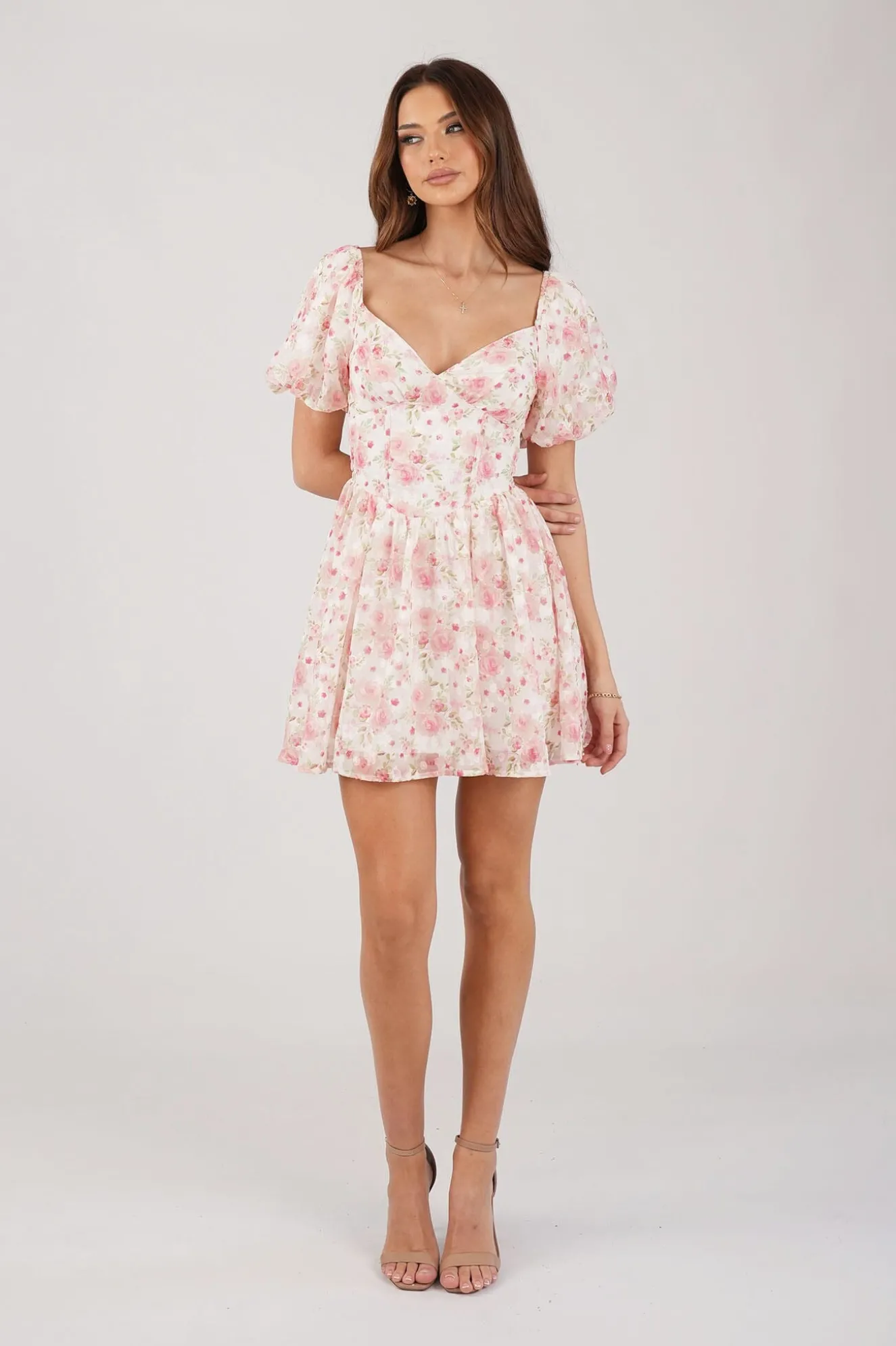 Miyah is a gorgeous floral mini summer dress cut in a feminine silhouette and features puff sleeves which can be worn both on or off the shoulder. Team this lovely spring/summer dress with rose gold accessories for your Euro summer holiday or weekend look this season.