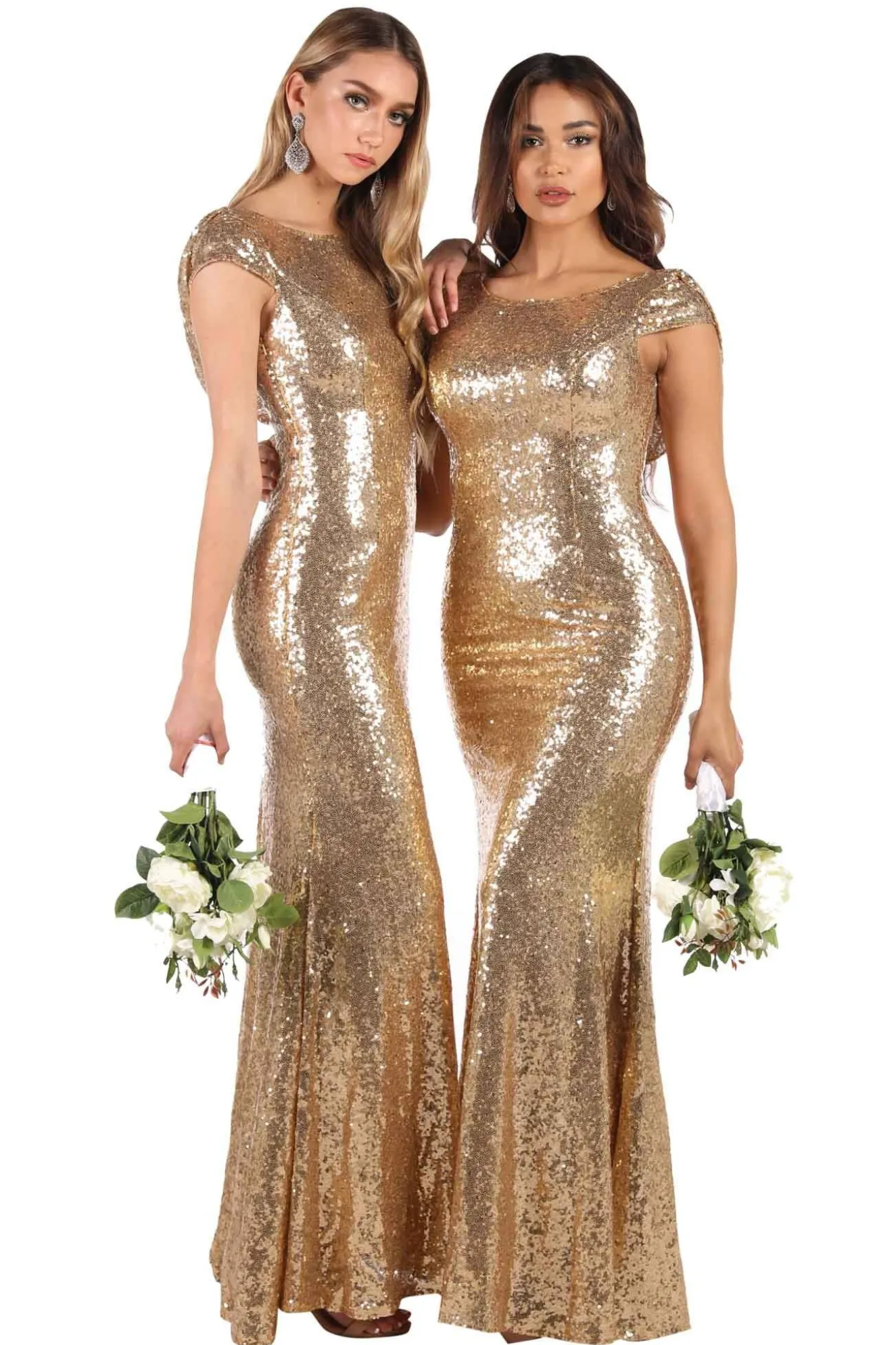 Add a little sparkle to your special day or night in our Kira sequin maxi dress. This elegant sequin gown features low cowl back and high round neckline with a cap sleeve. Fitted through the bodice and torso, the skirt kicks out slightly from the knee down. It is the perfect bridesmaid dress or for any formal occasion.