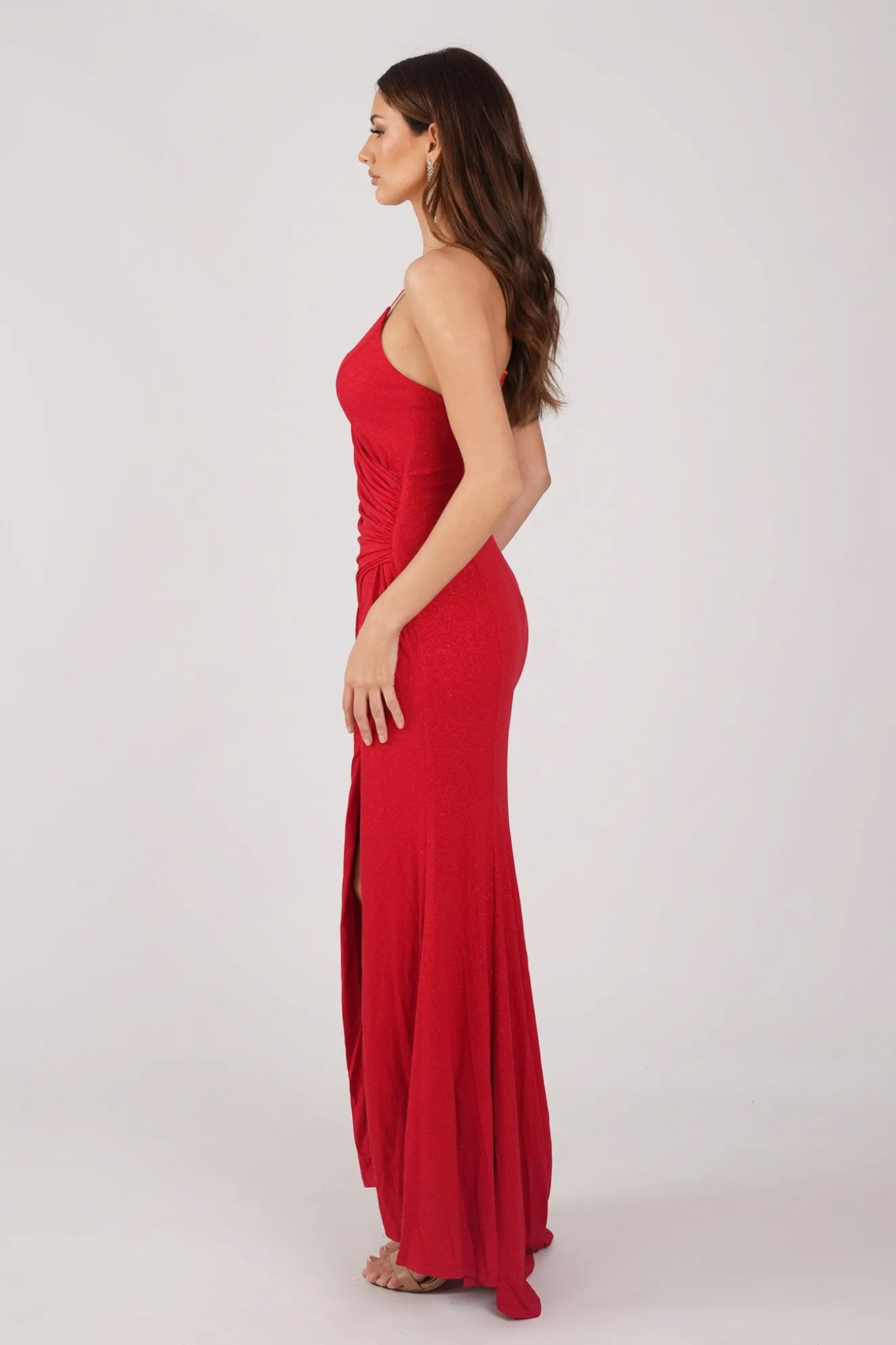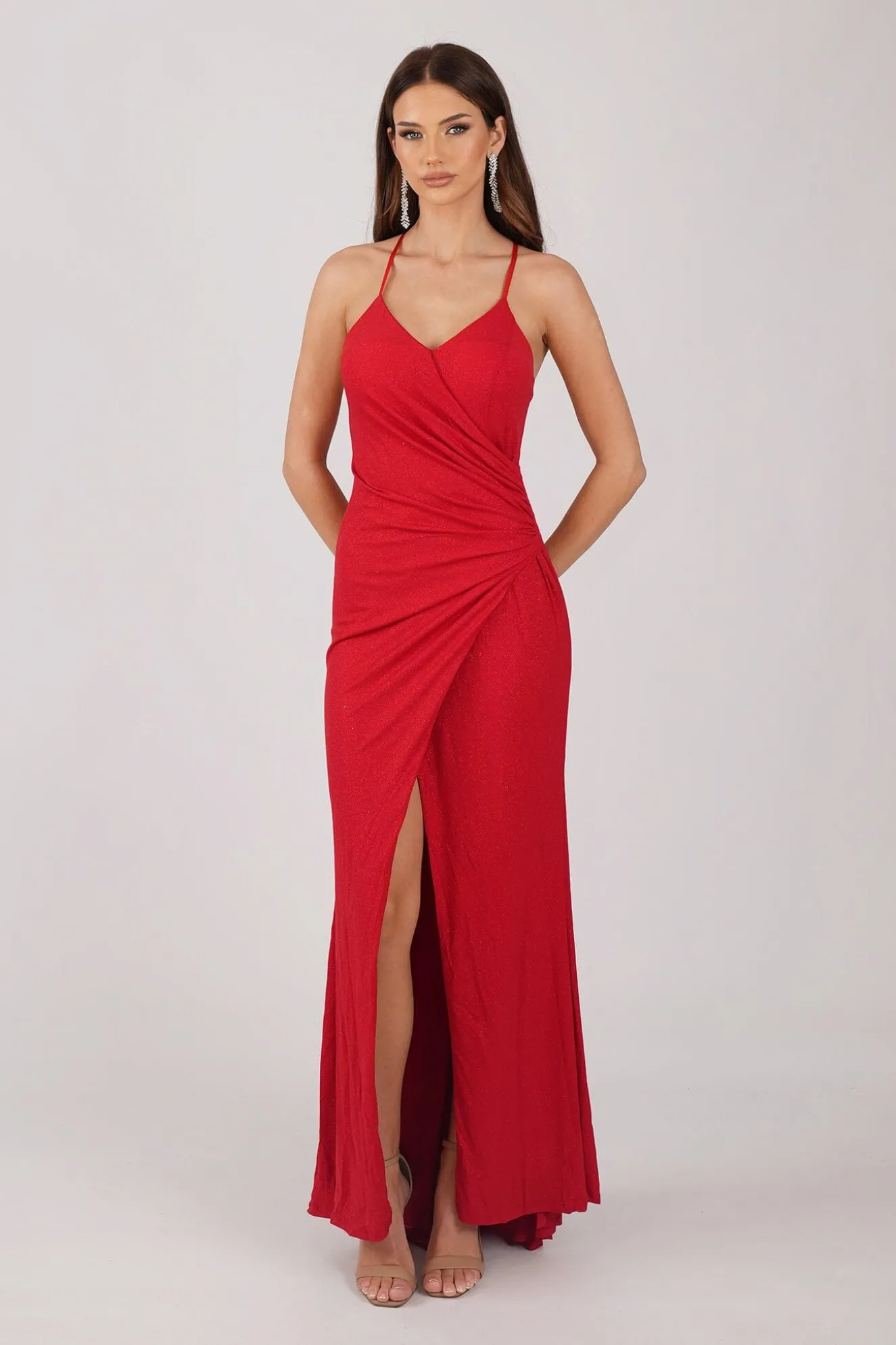 The gorgeous Lucia maxi dress features a classic V neckline, gathered detail, above the knee slit and crisscross open back design. This shimmery maxi dress will stun at any formal event such as prom, gala and black tie events and weddings. Style this fitted evening dress with simple or sparky accessories, heels and clutch to complete the look.