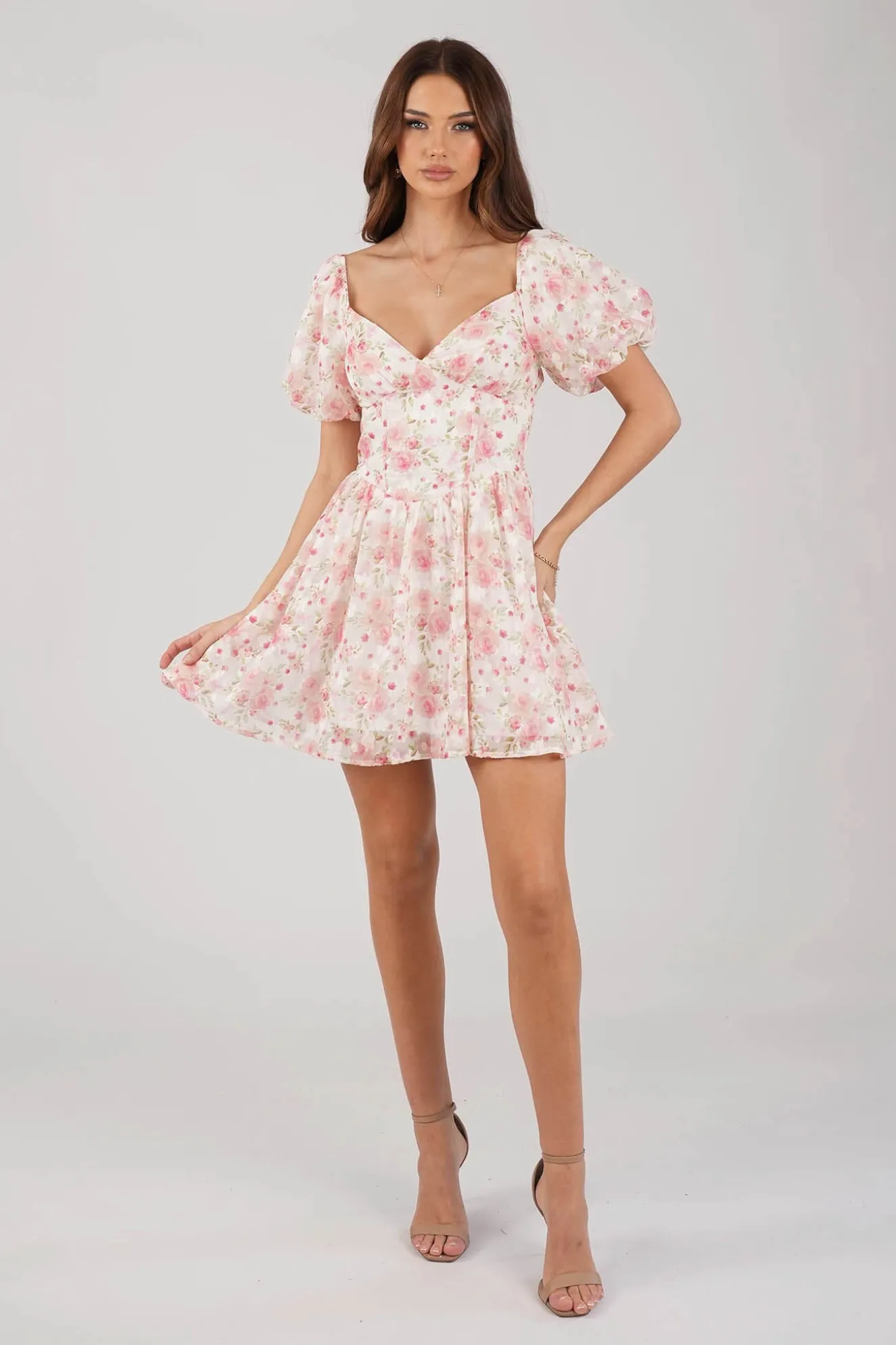 Miyah is a gorgeous floral mini summer dress cut in a feminine silhouette and features puff sleeves which can be worn both on or off the shoulder. Team this lovely spring/summer dress with rose gold accessories for your Euro summer holiday or weekend look this season.